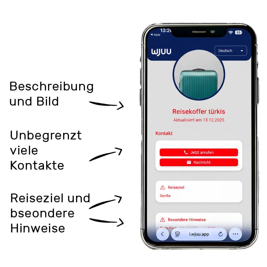 Der digitale Kofferanhänger mit QR-Code ist die moderne Lösung für sicheres Reisen.