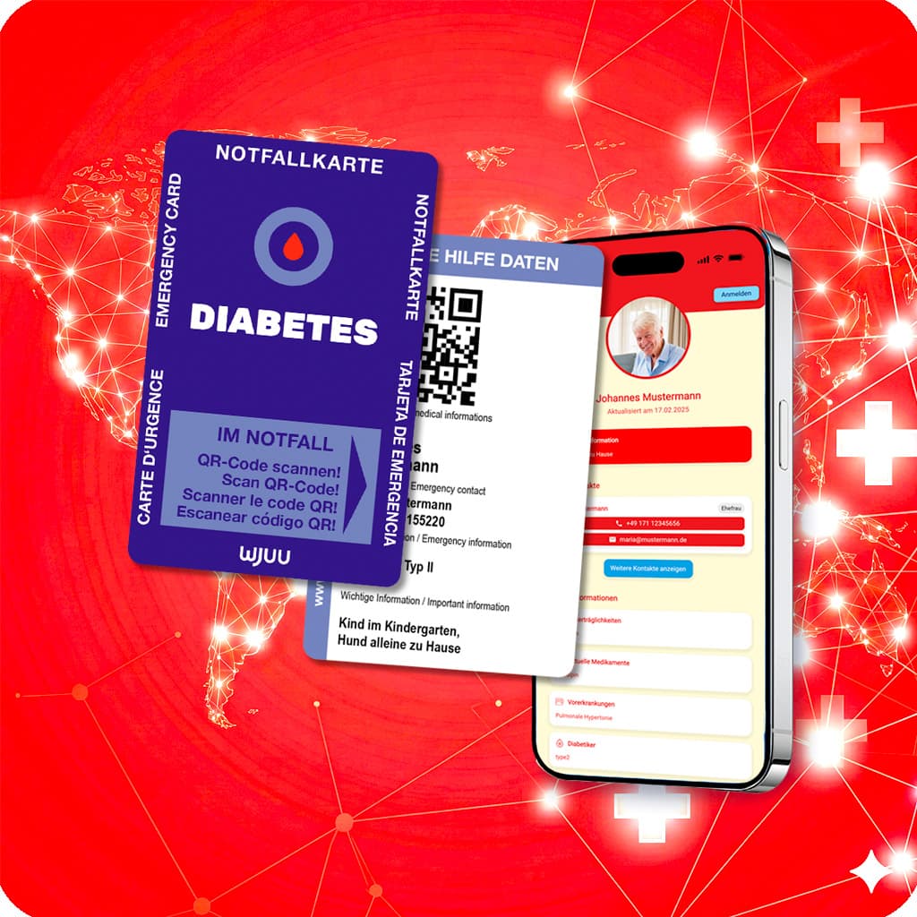 Diabetiker-Notfallkarte mit QR-Code | Digitaler Notfallpass